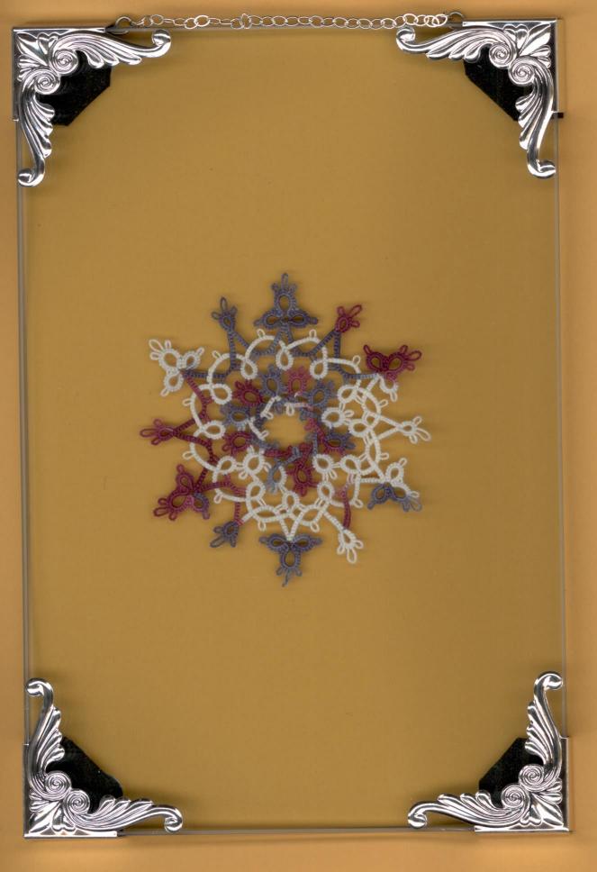 This is Mark Myers' Celtic Snowflake done is quilting thread. I entered it in the 2004 Orange County Fair. It placed 2nd in tatting. |